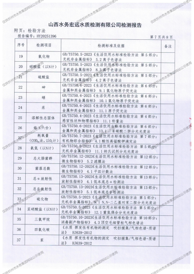 忻州城區(qū)公共供水水源水、出廠水、管網(wǎng)水、管網(wǎng)末梢水2025年11月份水質(zhì)信息公示