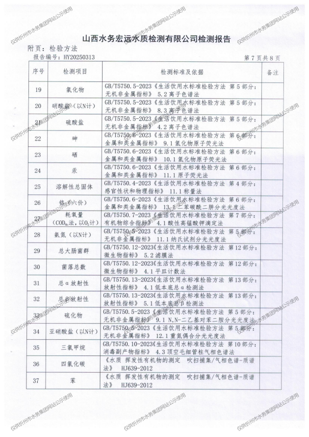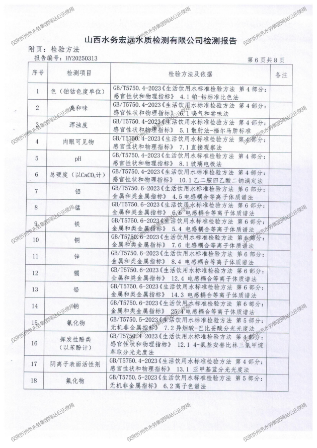 忻州城區(qū)公共供水水源水、出廠水、管網(wǎng)水、管網(wǎng)末梢水2025年6月份水質(zhì)信息公示